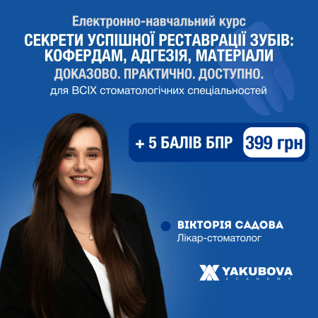 Електронний курс: Секрети успішної реставрації зубів: кофердам, адгезія, матеріали. Доказово, практично, доступно